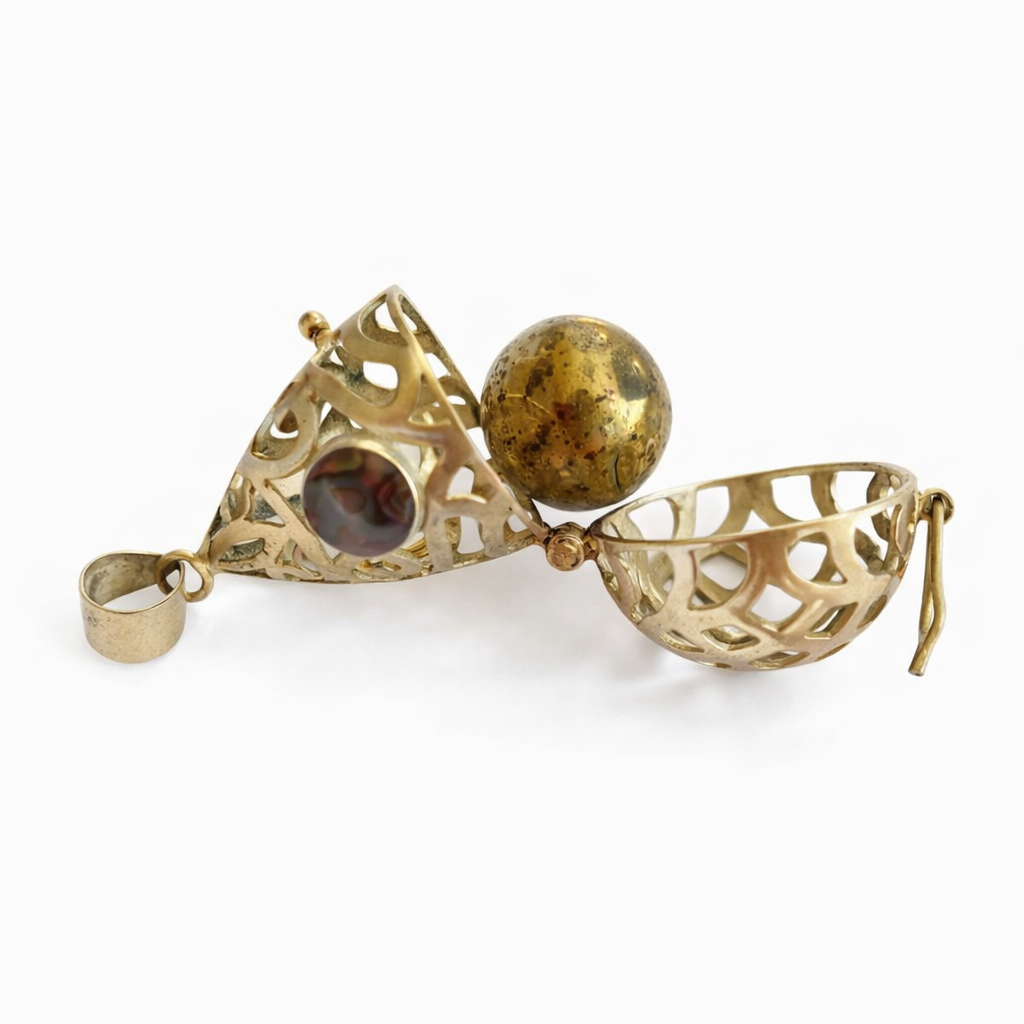Sterling Silver Opening silver locket with jasper stone details & Balinese prayer / Jingle Ball